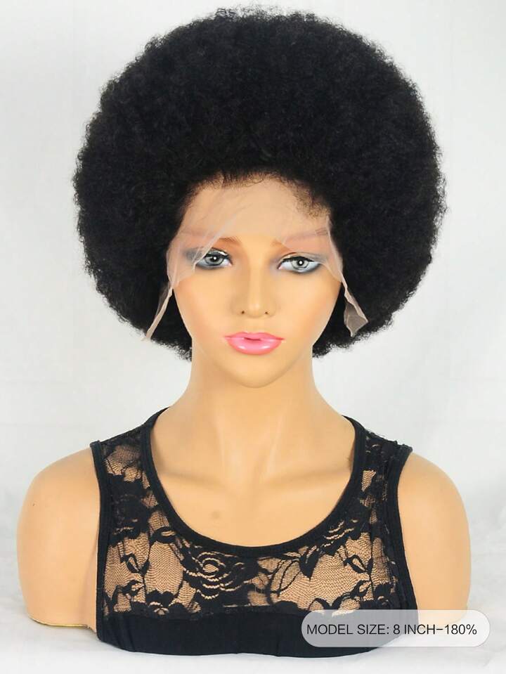 Perruque afro crépue bouclée avec devant en dentelle, cheveux humains courts sans colle, partie latérale, délié naturel, document naturel, 13tage